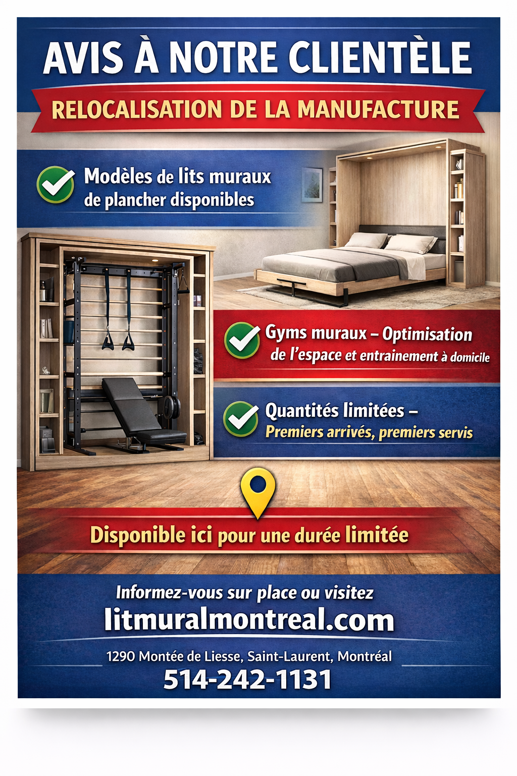 Lit Mural Montréal est une entreprise québécoise en pleine croissance, favorisant la durabilité et le respect de l’environnement, Lit Mural Montréal aussi reconnu pour ses conceptions personnalisées et la grande qualité de ses meubles.